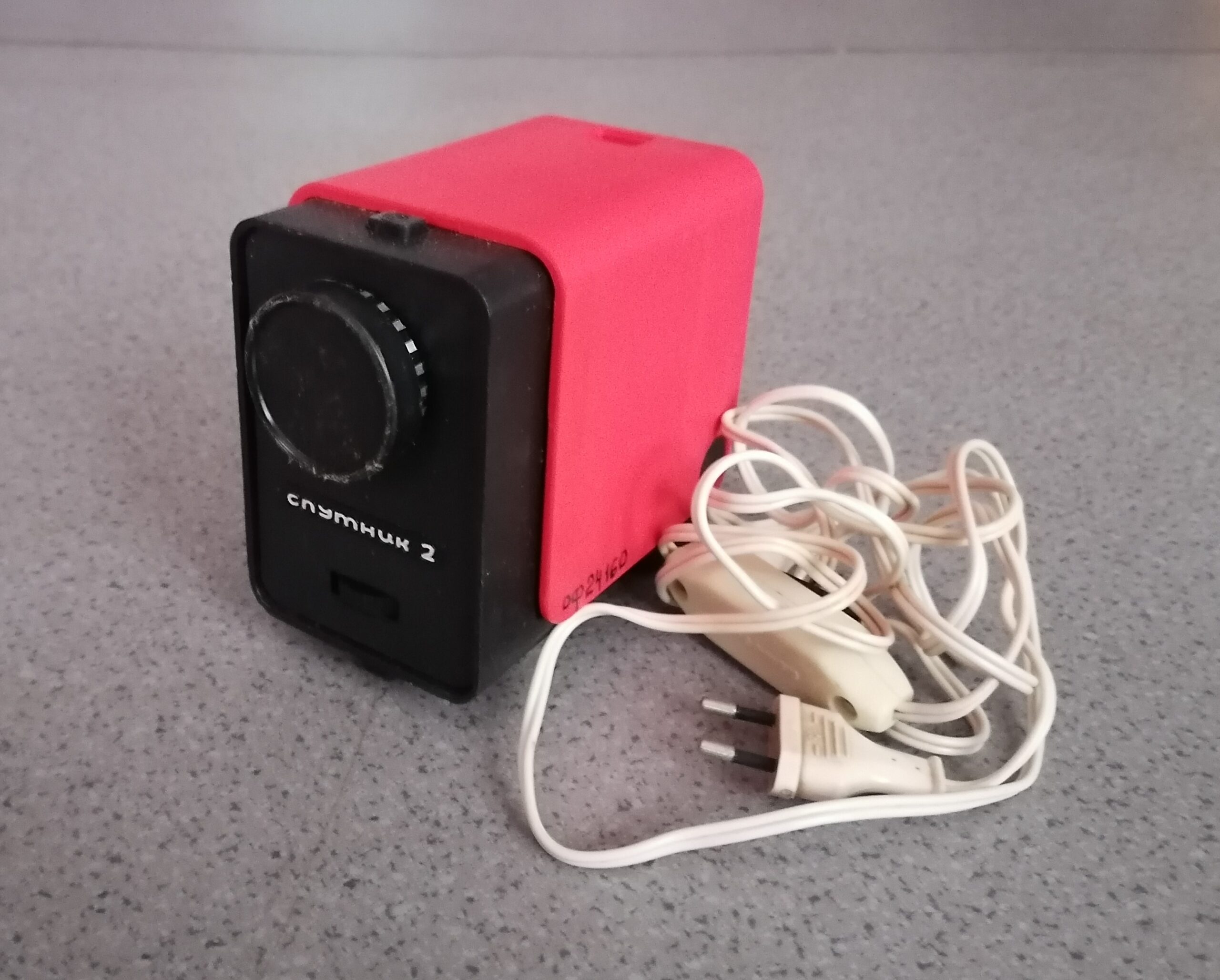 Фильмоскоп “Спутник – 2”, передала в музей Е. Д. Штоль. Эта модель была настоящей классикой советского кинопроката. Она отличалась компактностью и легкостью, что позволяло легко переносить её с места на место. Благодаря своей универсальности, “Спутник” был одним из наиболее распространенных фильмоскопов в школах, детских садах и домах культуры.
